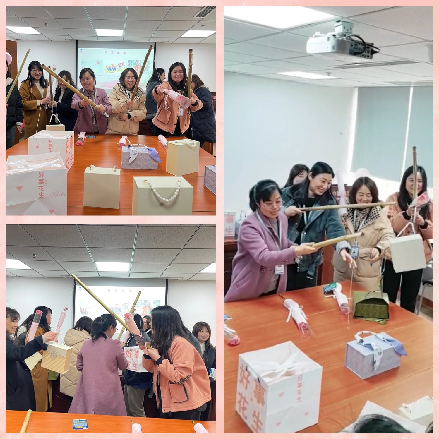 盲盒礼品环节更是让大家惊喜连连。女神们纷纷化身”钓鱼小能手“,大家手持鱼竿,小心翼翼地钓取属于自己的礼物。有的礼品实用贴心,有的则充满创意,大家都期待着能够收获一份意外的惊喜,现场洋溢着满满的幸福感。